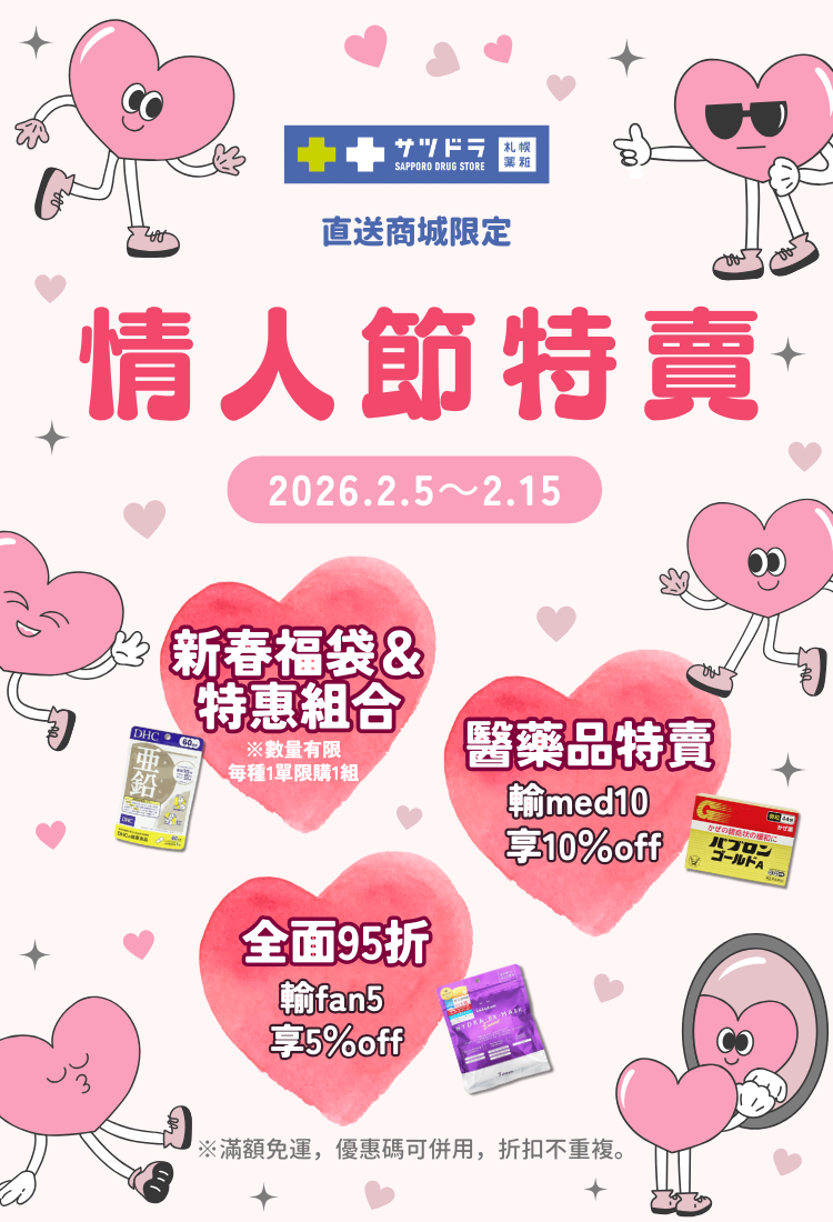 2.5~2.15 情人節特賣!超值福袋,新春特賣72折起| 輸碼【fan5】全面95折!醫藥品9折!首單輸碼【sds500】立減500円 More