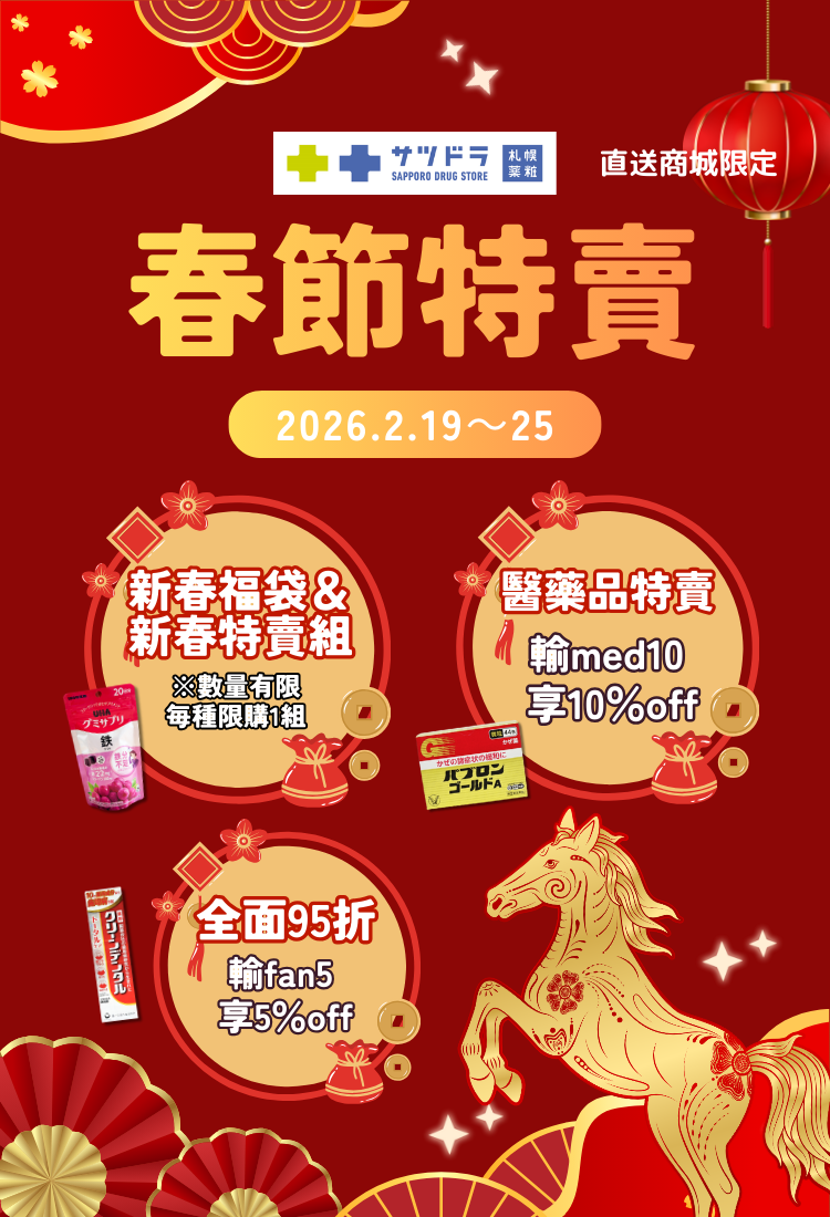 2.19~2.25 新春超值福袋/特賣72折起| 輸碼【fan5】全面95折|醫藥品9折|首單輸碼【sds500】立減500円 More