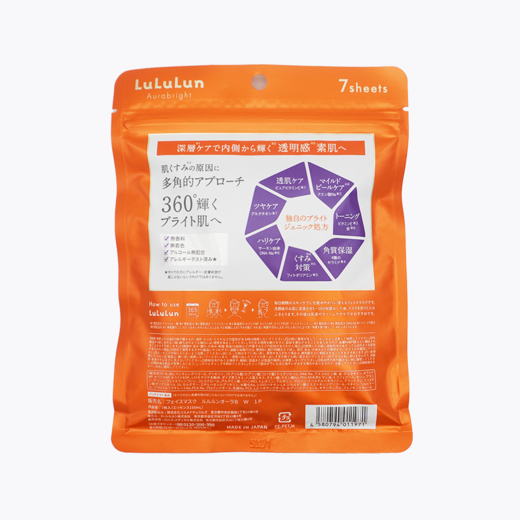 LuLuLun AuraBright 亮彩煥敷面膜 全方位護理 緊致保濕美白多效合一 PDRN 150ml 7片