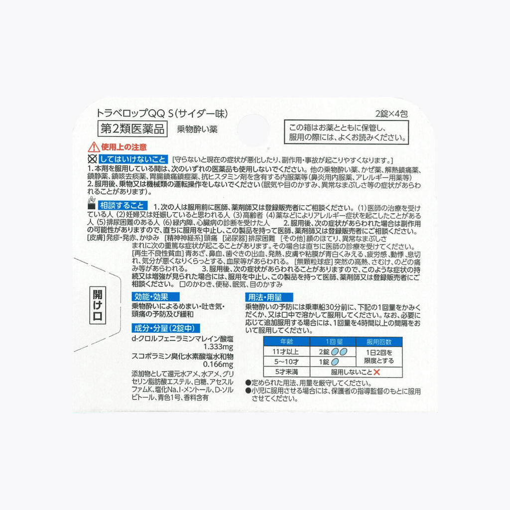 【第2類醫藥品】淺田飴 TraveLop QQS 暈車暈船藥 汽水口味 5歲~成人適用 8錠 8回分