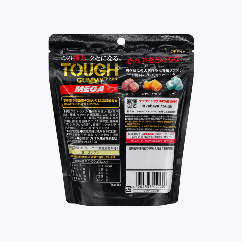 Kabaya卡巴 TOUGH GUMMY MEGA 超彈力軟糖 綜合汽水口味 大容量 203g