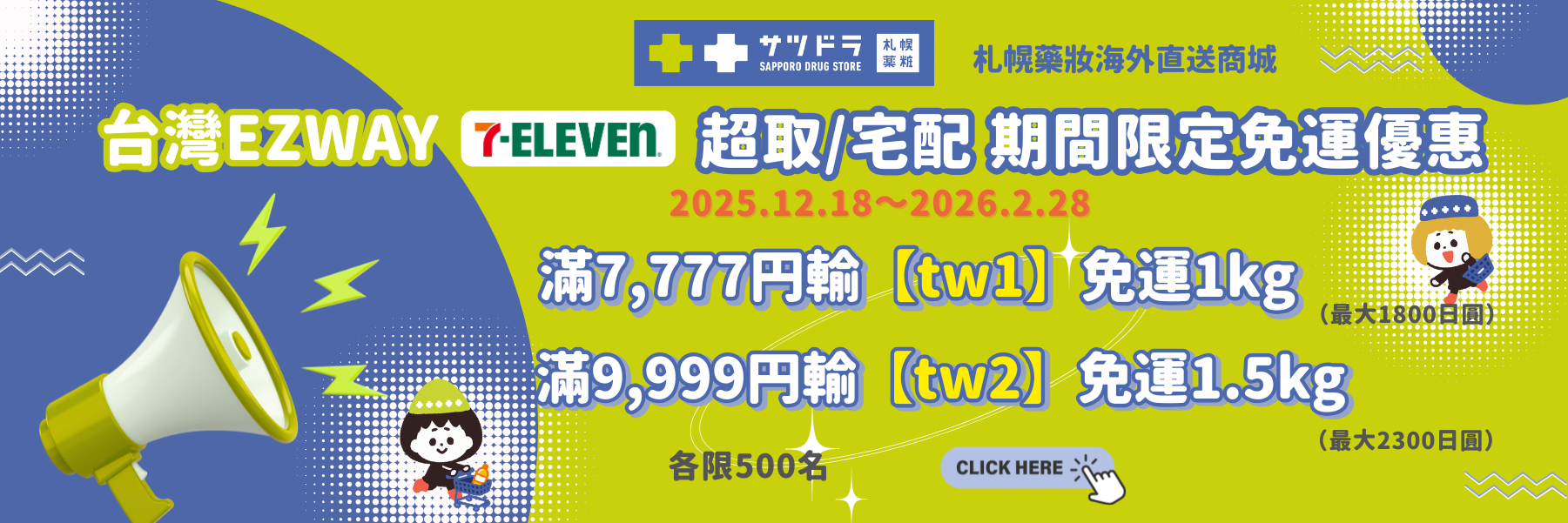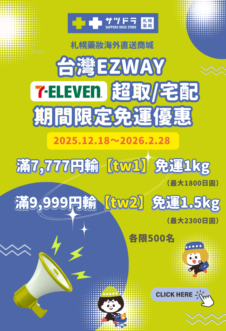 12.18~1.14 迎新特賣!台灣EZWAY配送滿7777円即免運|保健品類輸【sup7】享93折| 輸碼【fan5】全面95折!醫藥品9折!首單輸碼【sds500】立減500円 More